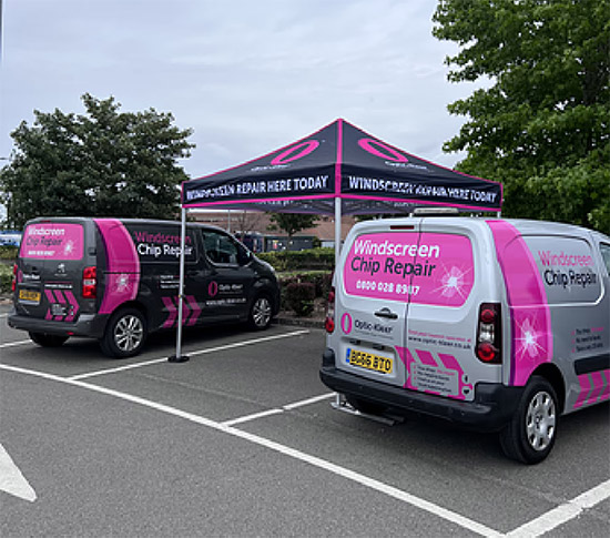Optic-Kleer is one of the UK’s biggest names in windscreen repair, offering customers a reliable, affordable, and convenient service. Operating largely out of car parks at supermarkets and DIY stores, trained and experienced windscreen repair technicians can fix a stone chip or other every-day damage while customers wait, or pop into the nearby store, returning to a fully-fixed windscreen after their shop.